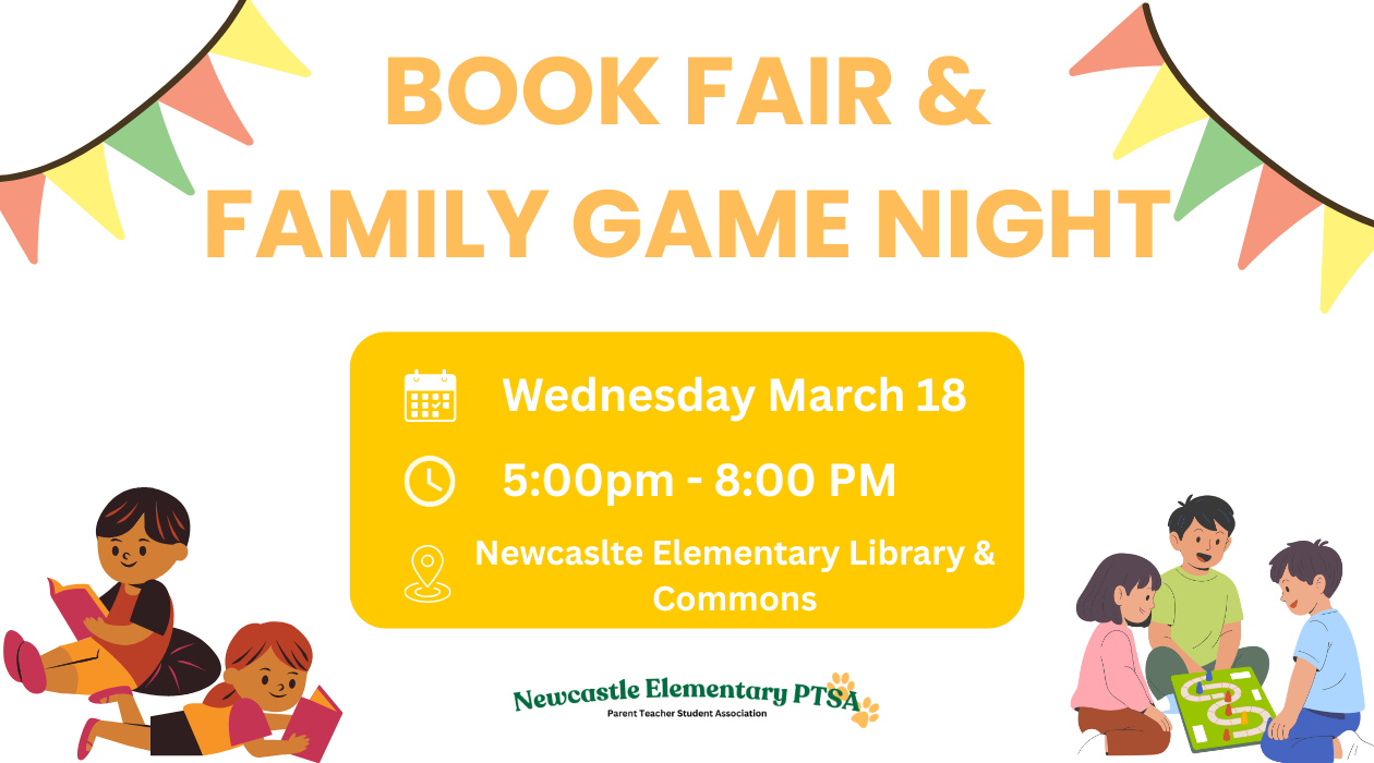 Families welcome to shop the book fair after school, will be open from 5pm - 7pm. Drop in shop, then head over to the gym to play some family games.